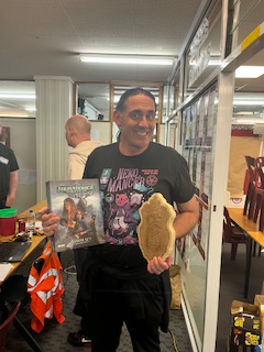 The Kapcon organisers award is something that we give to someone who has contributed to the Con, made our jobs easier, or we have seen helping others. This year was a tough year to call, I had 4 people I was considering as you are all so great. This year the award went to Paul Wilson, who helped bringing stuff to Kapcon, setting up, helped with the desk and making sure Scott was eating, got milk and ice each day and ran multiple games across the convention and was helping people new to the con. Thank you for all you do Paul (and Cat <3 ).